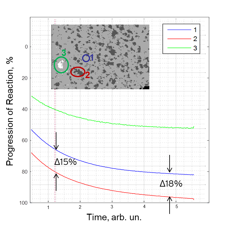 Die gemessene chemische Reaktion läuft tatsächlich auf diversen Stellen mit unterschiedlicher Geschwindigkeit ab.